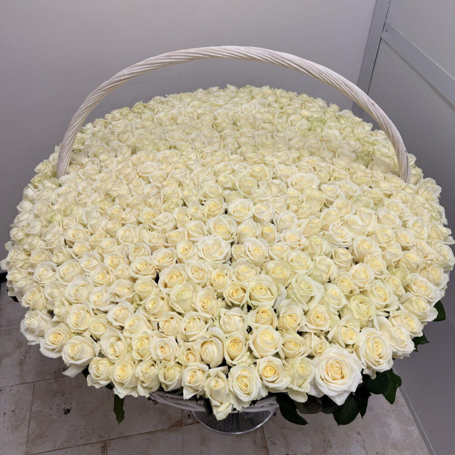 Букет из 501 белой розы в корзине «Нежность» в Пушкино