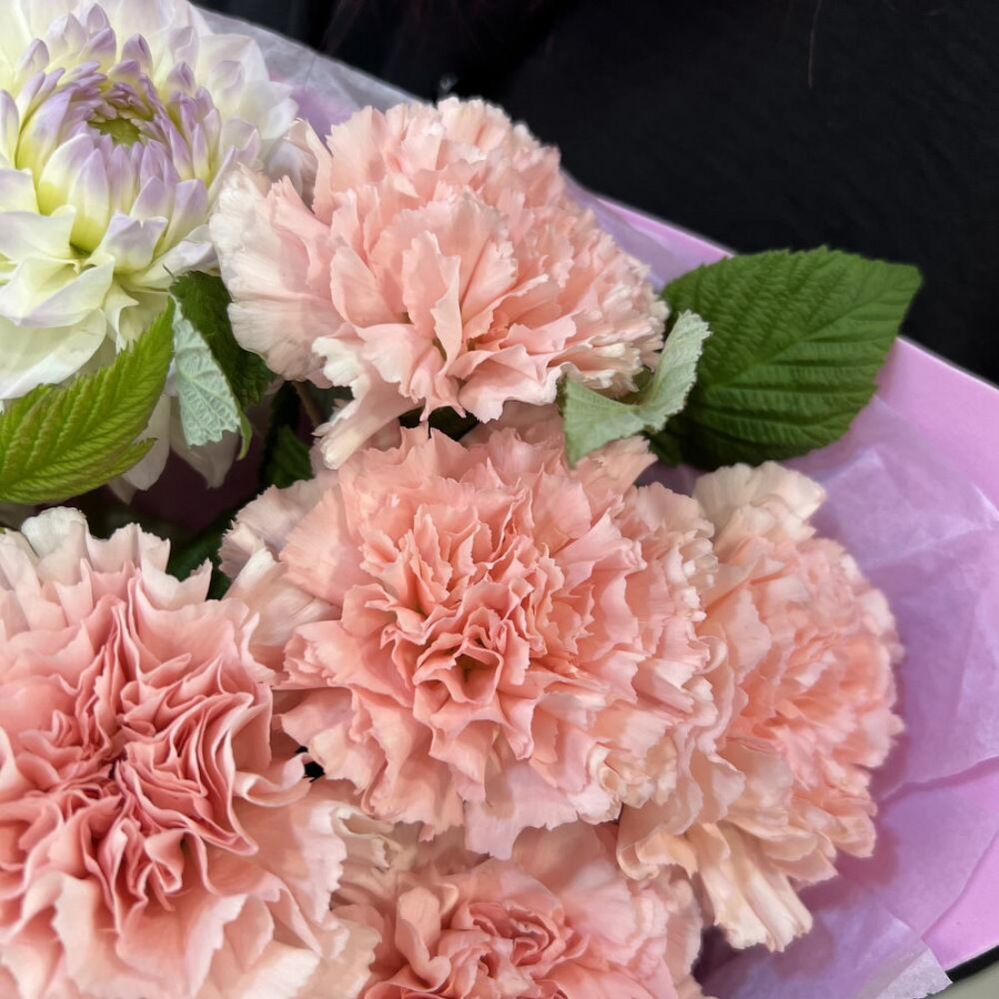 Букет из белых георгин и розовых гвоздик в Пушкино